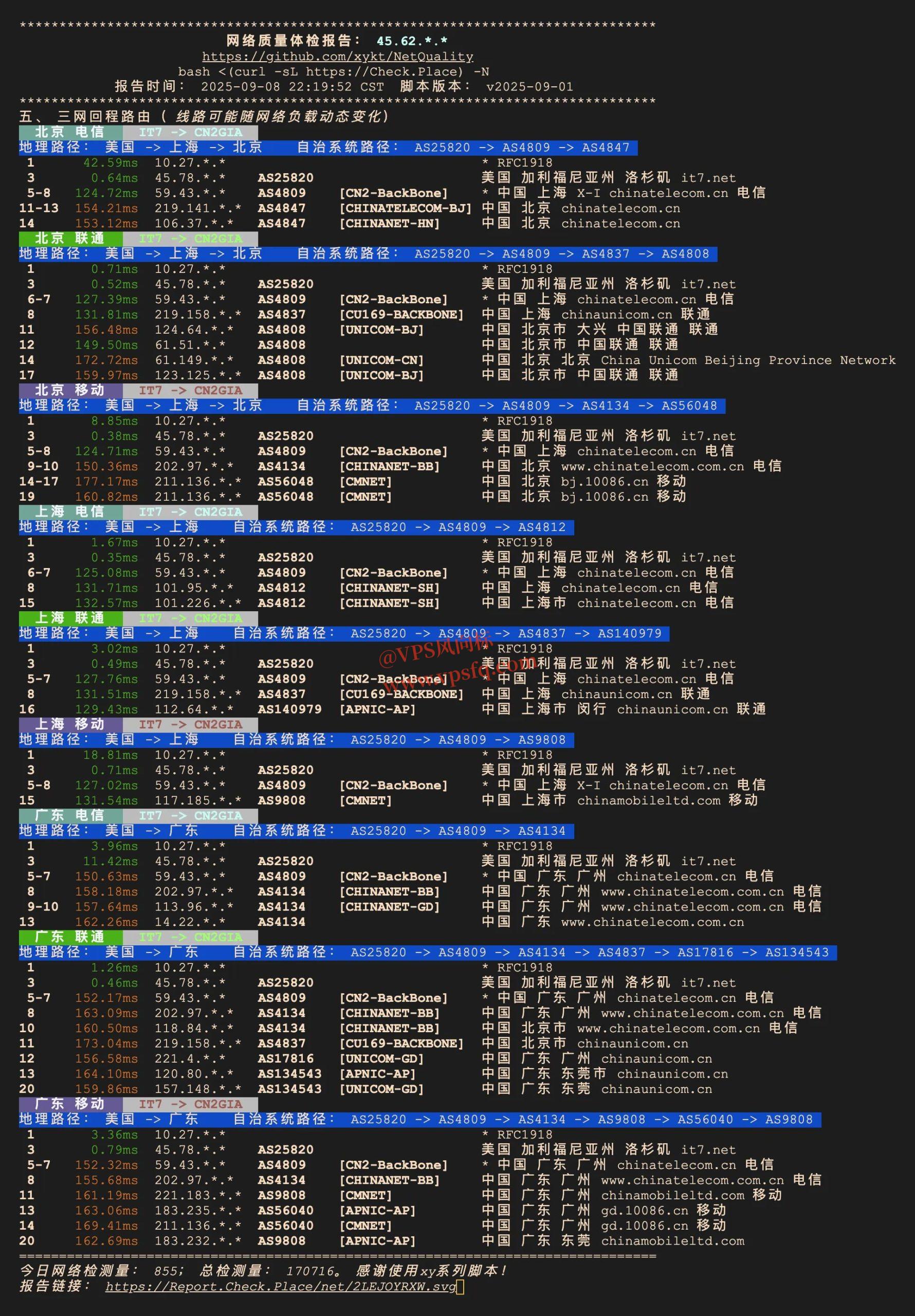 网络质量:三网CN2GIA,网速优秀,延迟是中美之间民用极致