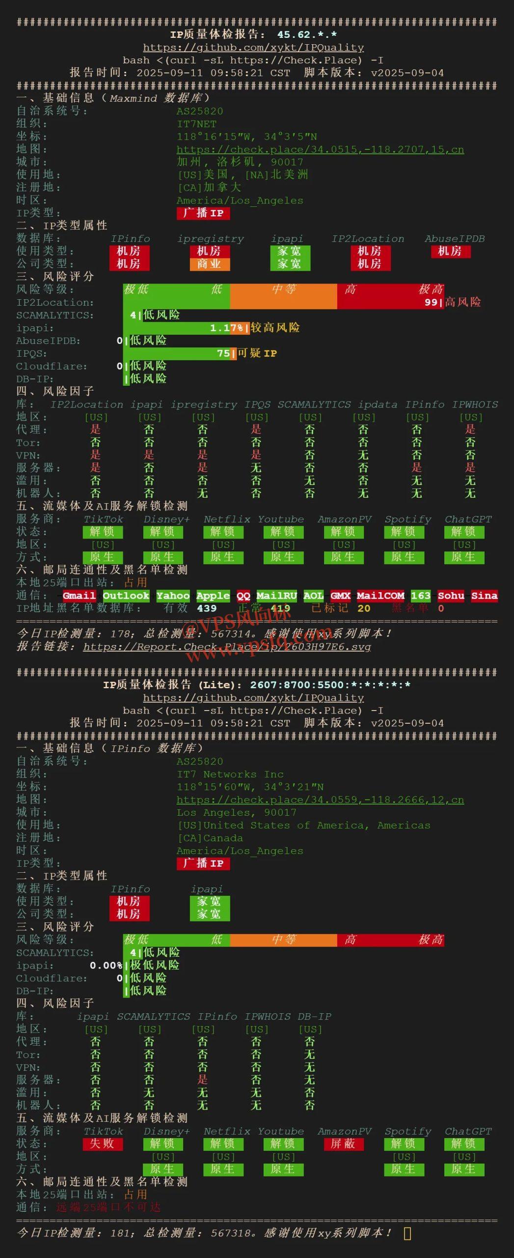 IP质量:流媒体几乎全绿解锁,奈飞、迪士尼、ChatGPT、Claude、Gemini等全部解锁