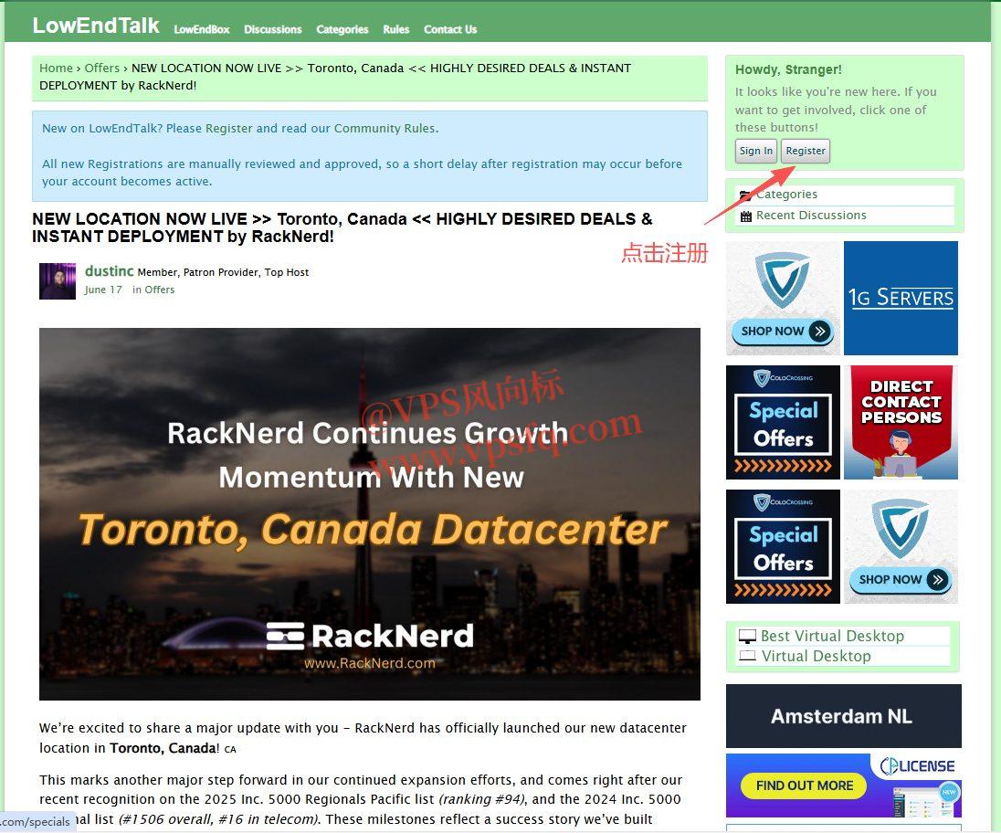 流程概览:打开LET论坛——注册账号——在RackNerd帖子下回复订单号——等待管理员回复翻倍成功
