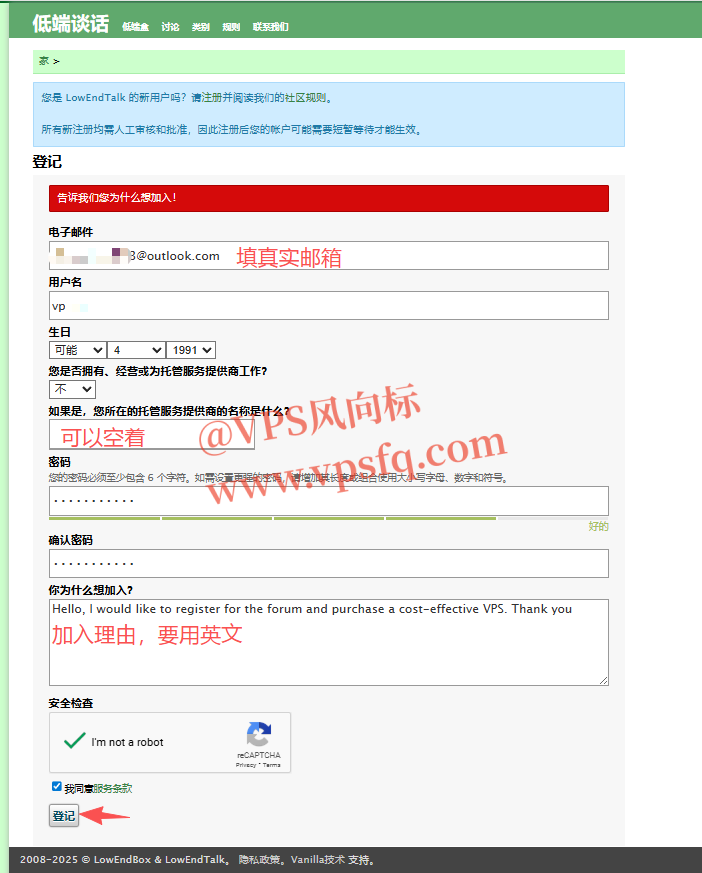 填写注册信息,最好是用国外邮箱,加入理由可以参考如下,最好是多写一点内容,太一致可能认为是重复注册,导致不能批准,用英语: