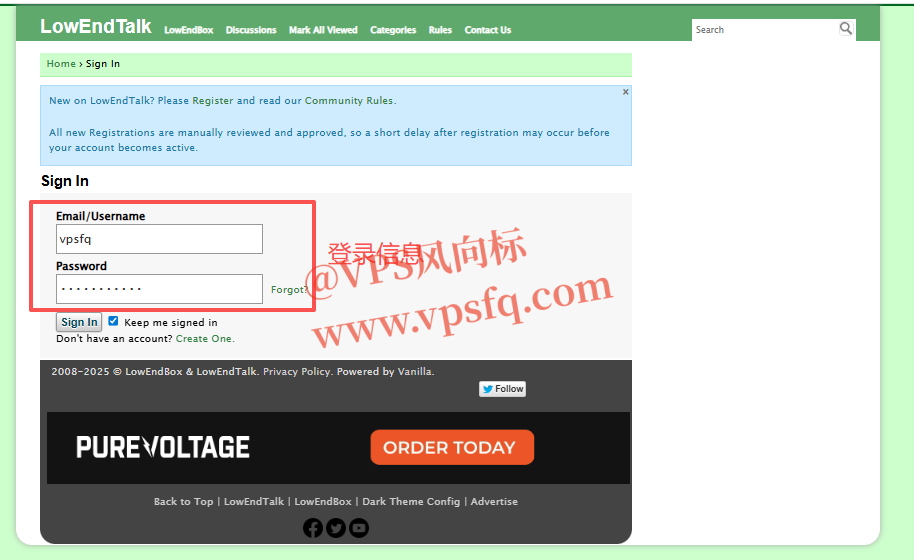 然后进入LET论坛的登录页面,输入刚才的注册信息,登录平台,用以验证邮箱: